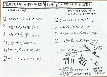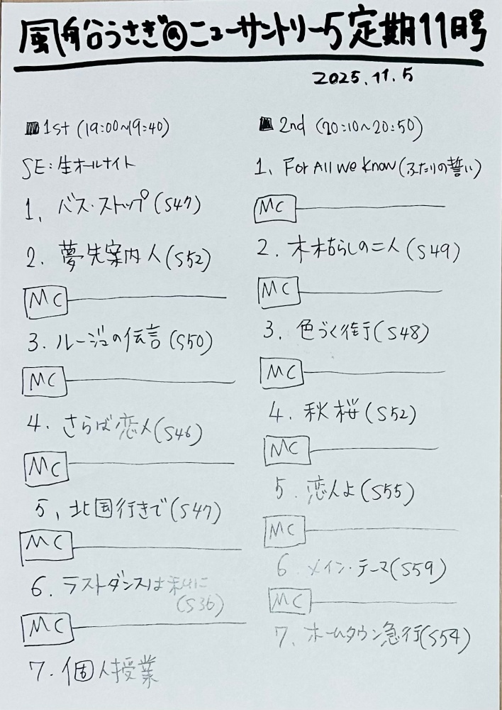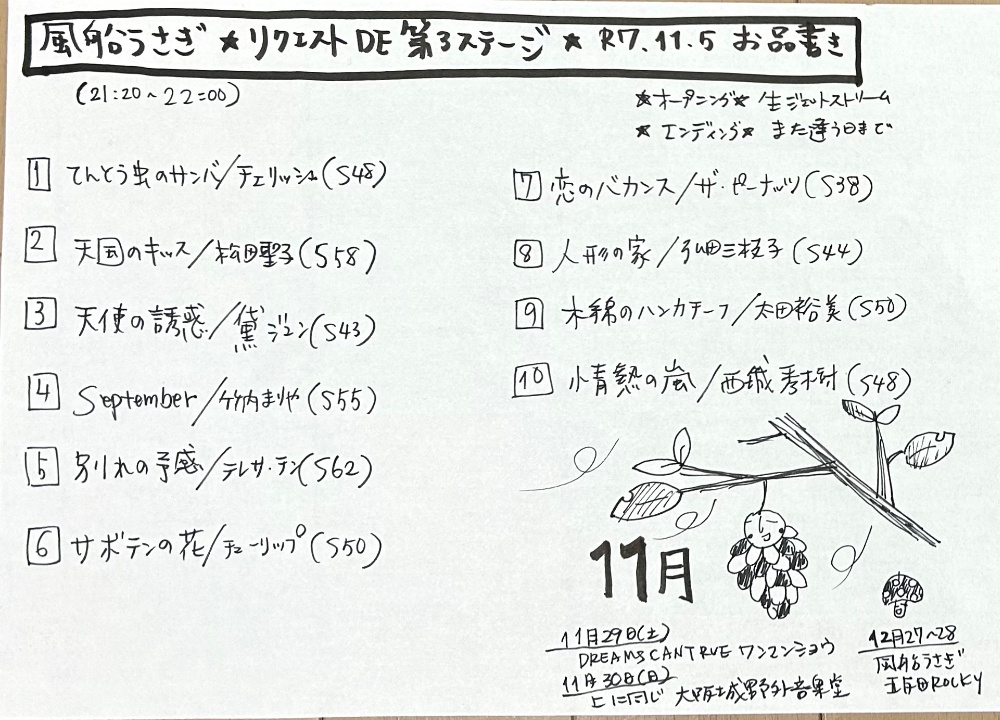 今月は季節に合わせて少ししっとりめ?な選曲でしたが、合間のMCはちっともしっとりしてませんでした。爆笑のあとの百恵ちゃんの秋桜は切替が大変でした😂