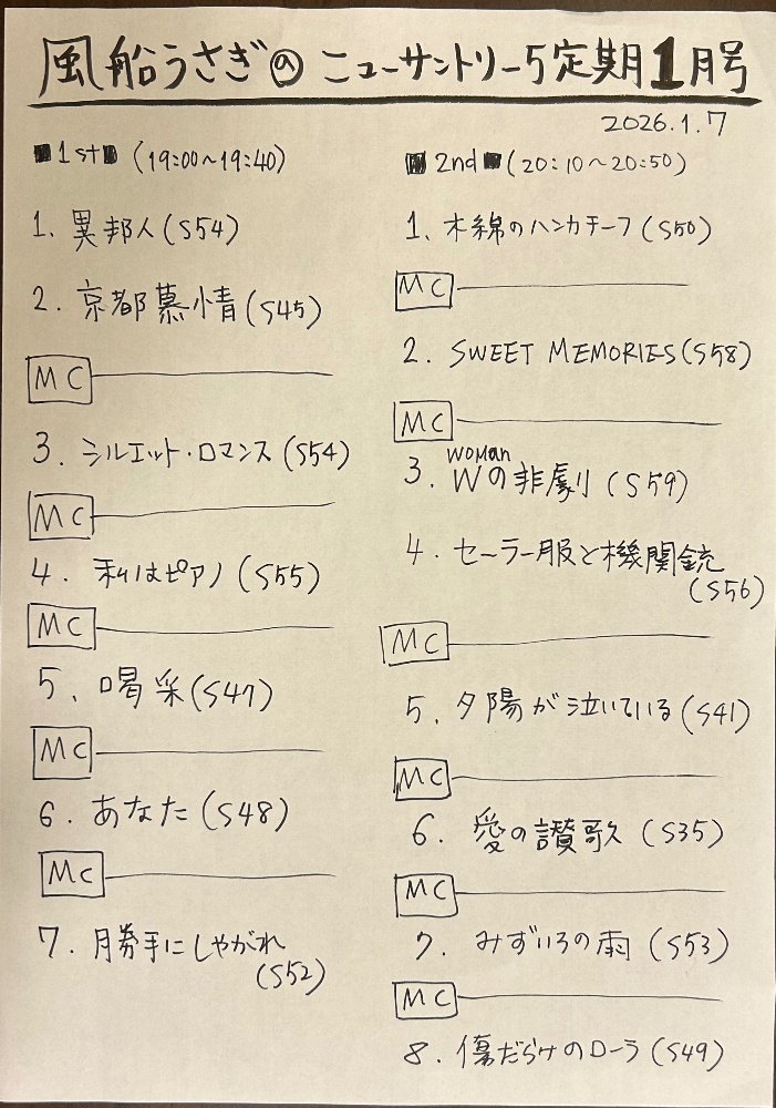 事の起こりは年末の社内クリスマス会&忘年会で「バンドで歌ってるんやっけ?」との話から、どんな歌歌ってるかとたくさん質問が。